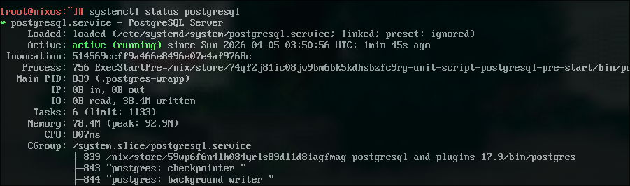 We can now run systemctl status postgresql and we'll be greeted with this: